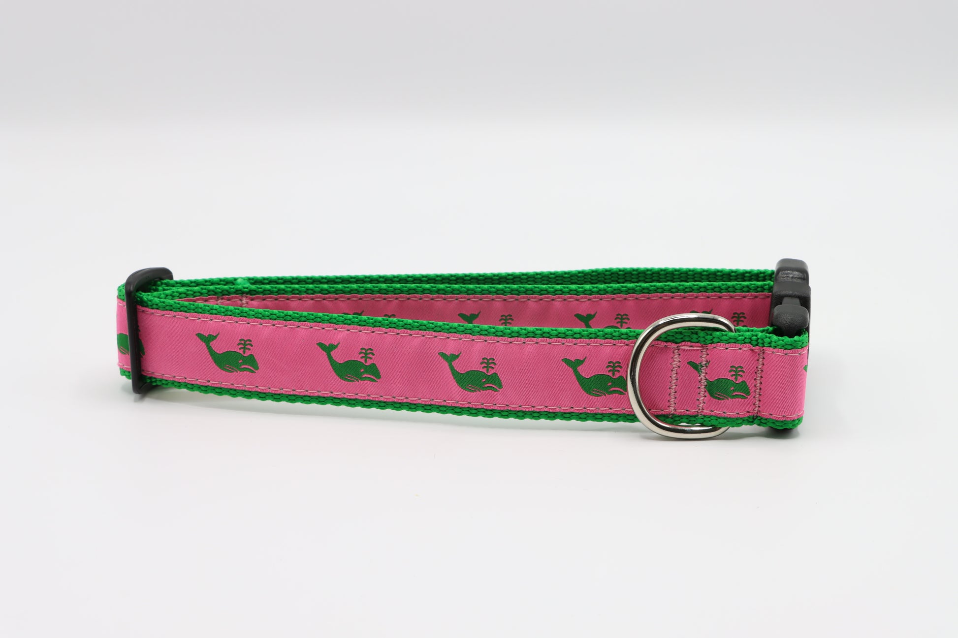 Green Whale on Pink Dog Collar